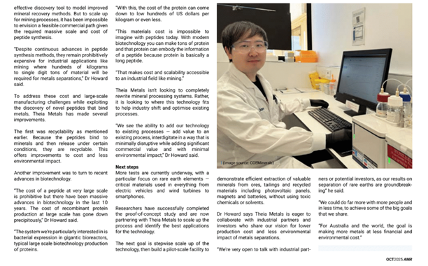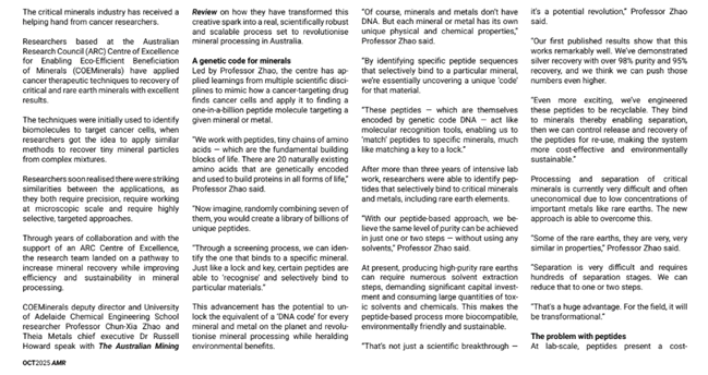 Australian Mining Review - Feature story on COEMinerals critical minerals innovation (October Edition 2025)