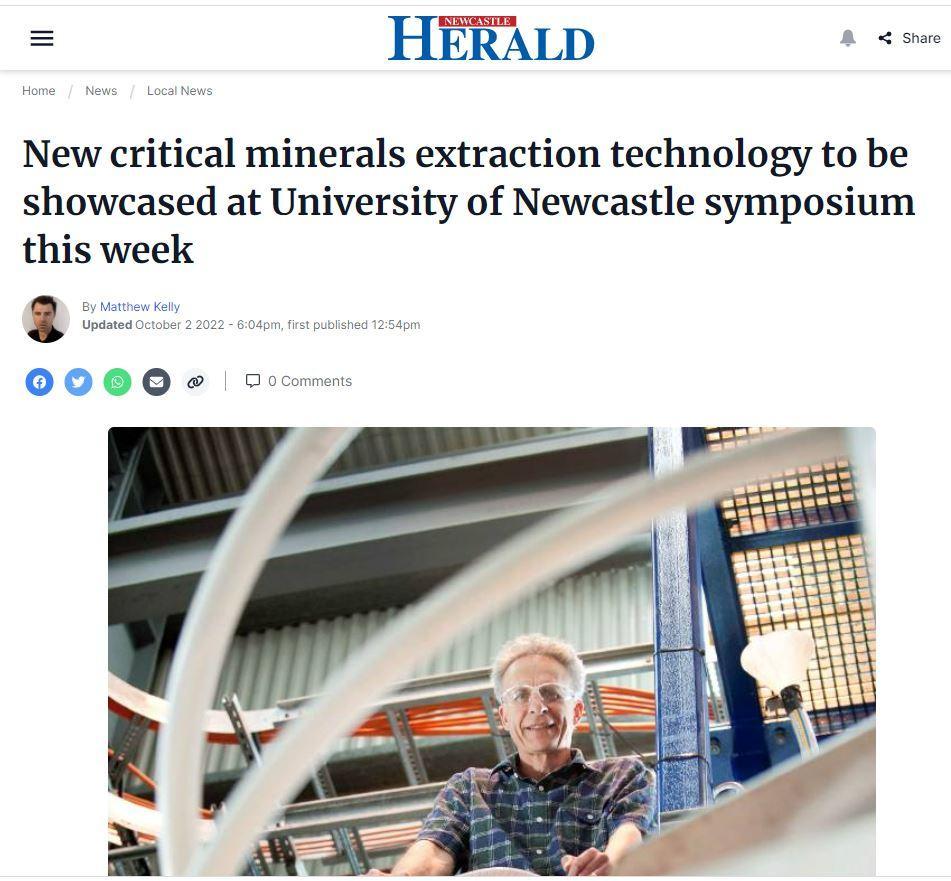 Headline: New critical minerals extraction technology to be showcased at University of Newcastle symposium this week